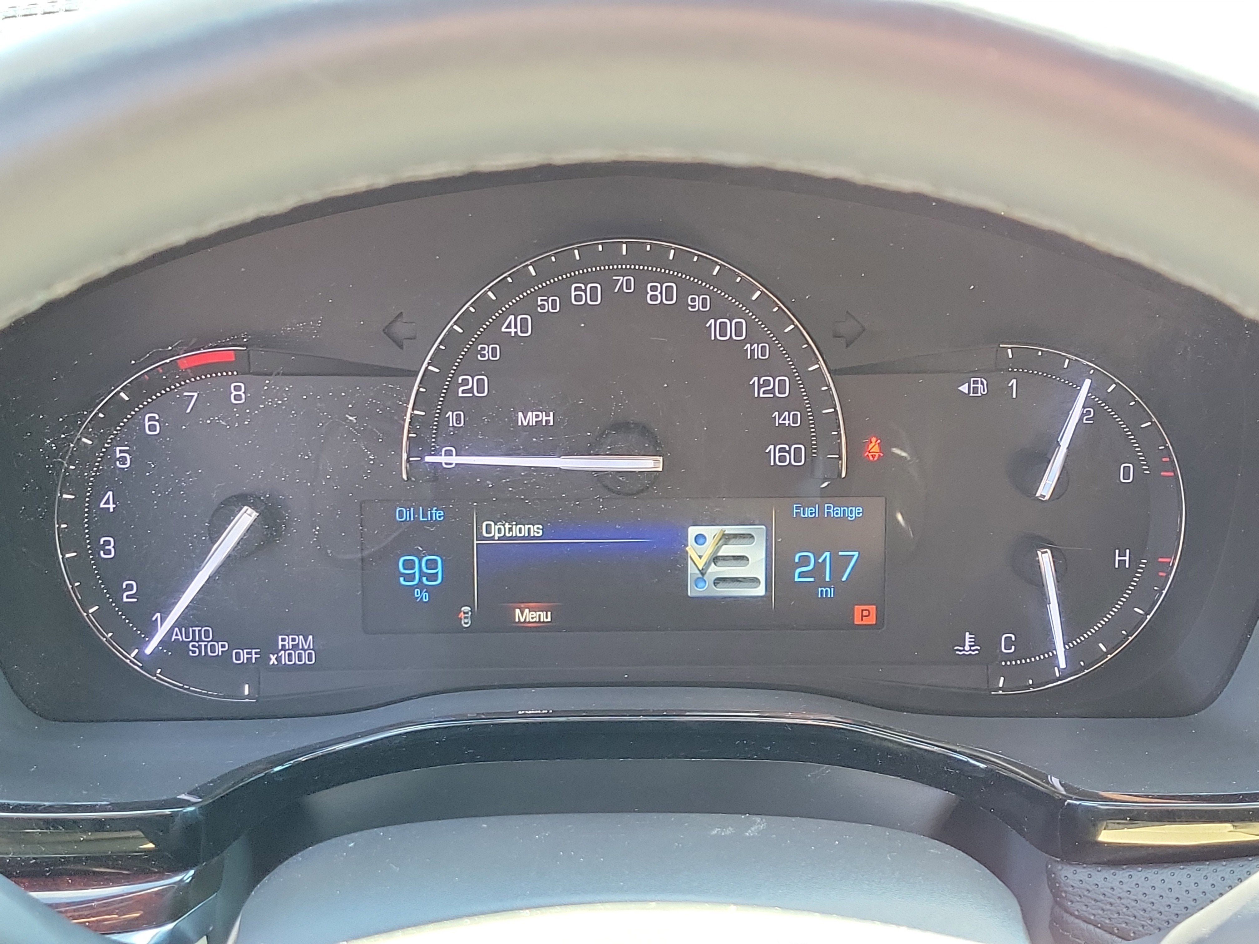 - Cadillac CUE Information and Media Control System, AM/FM stereo with 8" diagonal color information display, four USB ports, two auxiliary power outlets, auxiliary input jack, Natural Voice Recognition and Phone Integration for Apple CarPlay and Android Auto capability for compatible phone (Upgradeable to (IO6) Cadillac CUE Information and Media Control System with Embedded Navigation.)