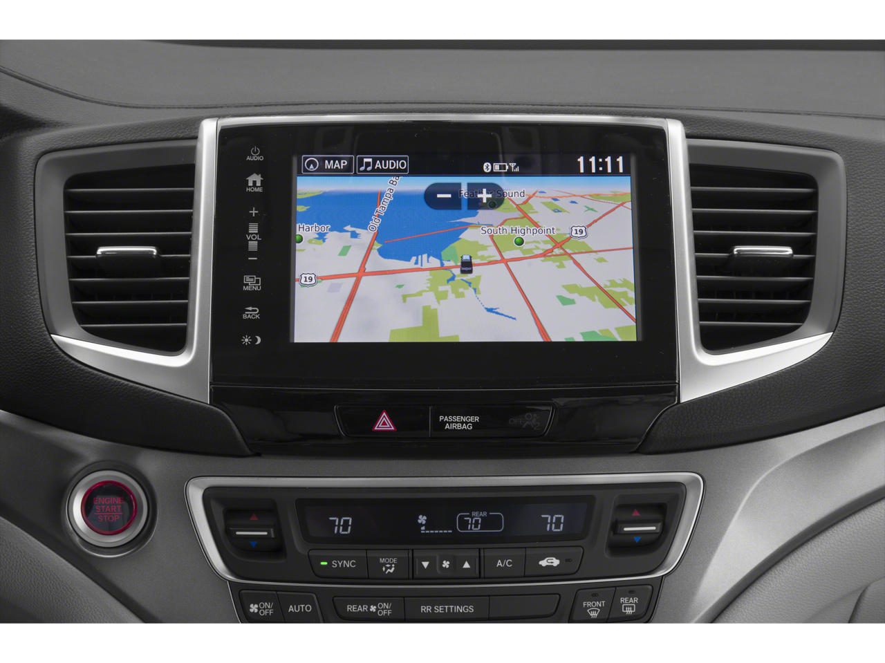 - Radio: AM/FM/MP3 w/Navigation System -inc: 225-watt audio system, 8" display audio w/high-resolution WVGA (800x480) electrostatic touch-screen and customizable feature settings, 7 speakers including subwoofer, Bluetooth® streaming audio, auxiliary input jack, Radio Data System (RDS), speed-sensitive volume control (SVC), 1.5-amp port in front/1.0-amp port in center console, Apple CarPlay, Android Auto, HondaLink, SMS text message function, HD radio, Pandora compatibility and 2.5-amp charging port