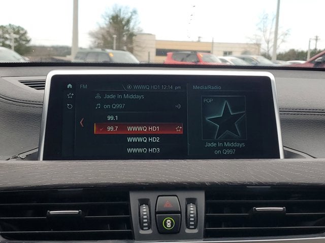 This Vehicle is nicely equipped with the following features: Convenience Package (Auto-Dimming Interior & Exterior Mirrors, Auto-Dimming Rear-View Mirror, Comfort Access Keyless Entry, Lumbar Support, Panoramic Moonroof, Power-Folding Mirrors, SiriusXM Satellite Radio, and Universal Garage-Door Opener), 3.20 Axle Ratio, 4-Wheel Disc Brakes, 7 Speakers, ABS brakes, Air Conditioning, Alloy wheels, AM/FM radio, Apple CarPlay Compatibility, Auto High-beam Headlights, Automatic temperature control, Brake assist, Bumpers: body-color, Compass, Delay-off headlights, Driver door bin, Driver vanity mirror, Dual front impact airbags, Dual front side impact airbags, DVD Area Coding (North America), Electronic Stability Control, Emergency communication system: BMW Assist eCall, Exterior Parking Camera Rear, Four wheel independent suspension, Front anti-roll bar, Front Bucket Seats, Front Center Armrest, Front dual zone A/C, Front fog lights, Front reading lights, Front Sport Bucket Seats, Heated door mirrors, Heated Front Seats, Heated Front Seats & Steering Wheel, Heated Steering Wheel, Hi-Fi Sound System, Illuminated entry, Knee airbag, Leather Shift Knob, Low tire pressure warning, Memory seat, Navigation System, Occupant sensing airbag, Outside temperature display, Overhead airbag, Panic alarm, Passenger door bin, Passenger vanity mirror, Power door mirrors, Power driver seat, Power Front Seats, Power Liftgate, Power passenger seat, Power steering, Power windows, Radio Control US, Radio data system, Radio: Professional w/Bluetooth®/USB, Rain sensing wipers, Rear anti-roll bar, Rear reading lights, Rear seat center armrest, Rear window defroster, Rear window wiper, Remote keyless entry, Satin Aluminum Roof Rails, Security system, SensaTec Upholstery, Speed control, Speed-sensing steering, Speed-Sensitive Wipers, Split folding rear seat, Spoiler, Steering wheel mounted audio controls, Tachometer, Telescoping steering wheel, Tilt steering wheel, Traction control, Trip computer, Turn signal indicator mirrors, Variably intermittent wipers, Wheels: 18 x 7.5 Y-Spoke (Style 566), and Wheels: 19 x 8.0 Y-Spoke (Style 511)