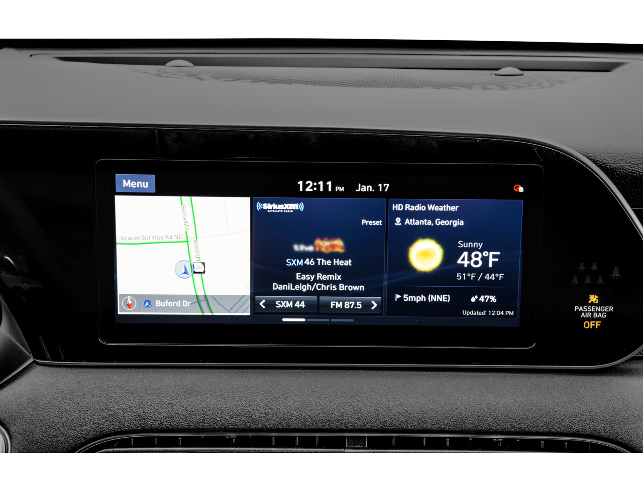 - Radio: AM/FM/MP3 Premium Audio System -inc: 630-Watts, 12-speaker harman/kardon premium audio system, QuantumLogic surround sound, Clari-Fi music restoration technology, 10.25" color touchscreen, on-board navigation, traffic flow including incident data via HD Radio (HERE), SiriusXM, HD Radio, Apple CarPlay & Android Auto, Blue Link Connected Car, driver talk (in-car intercom), quiet mode, multiple device connection (up to 2 devices), USB/Auxiliary input jacks, rearview monitor w/parking guidelines, Bluetooth® hands-free w/wireless audio streaming and wireless device charging (for Qi-supported devices)