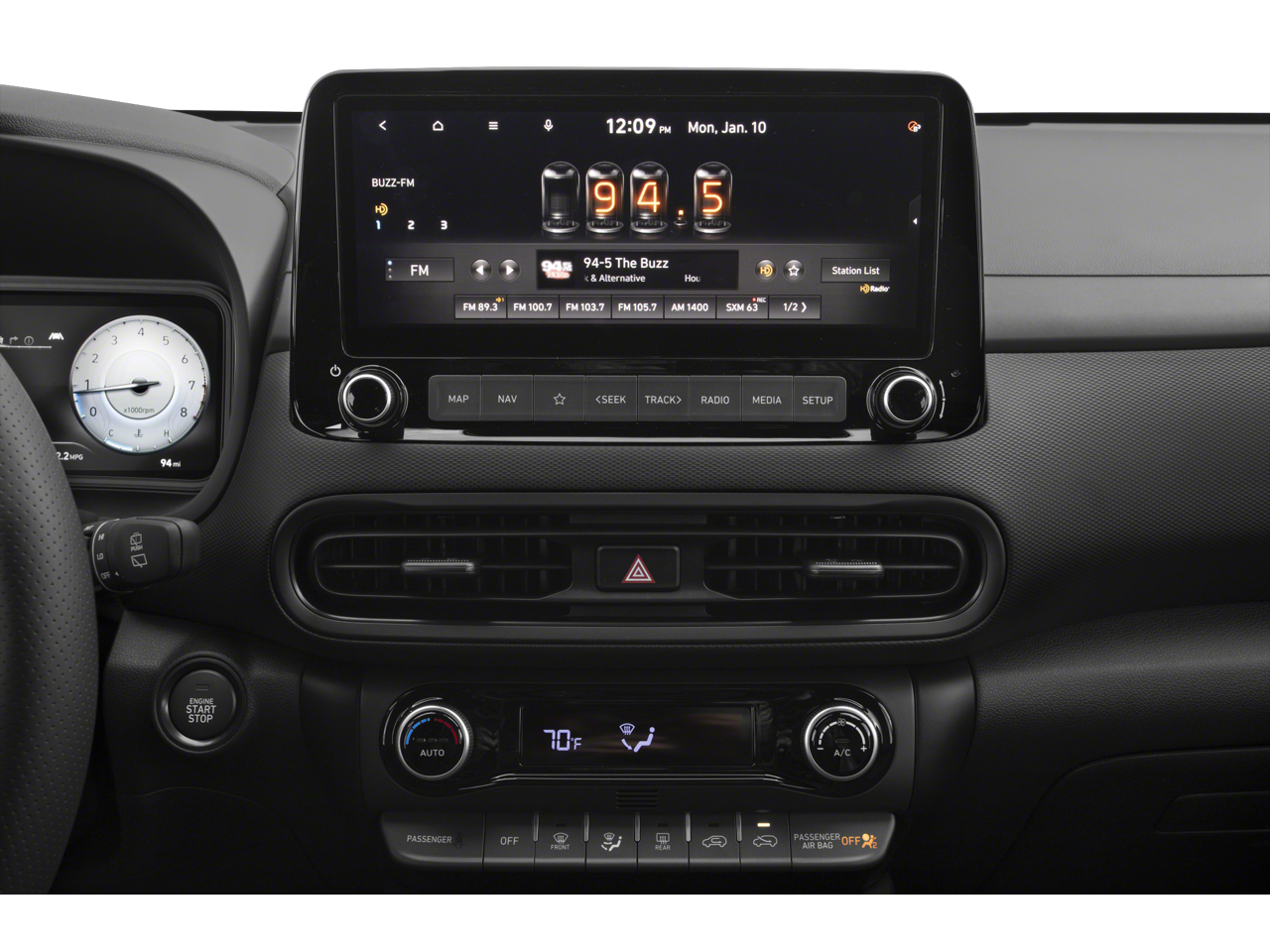 - Radio: AM/FM Audio System -inc: 8 speakers, external amplifier, Clari-Fi, navigation, traffic flow and incident data via HD Radio (HERE), Blue Link connected car system, dynamic voice recognition, Bluetooth®, 10.25" color touchscreen (AVN), Apple CarPlay, Android Auto, Harman Kardon premium audio, SiriusXM, HD Radio and USB