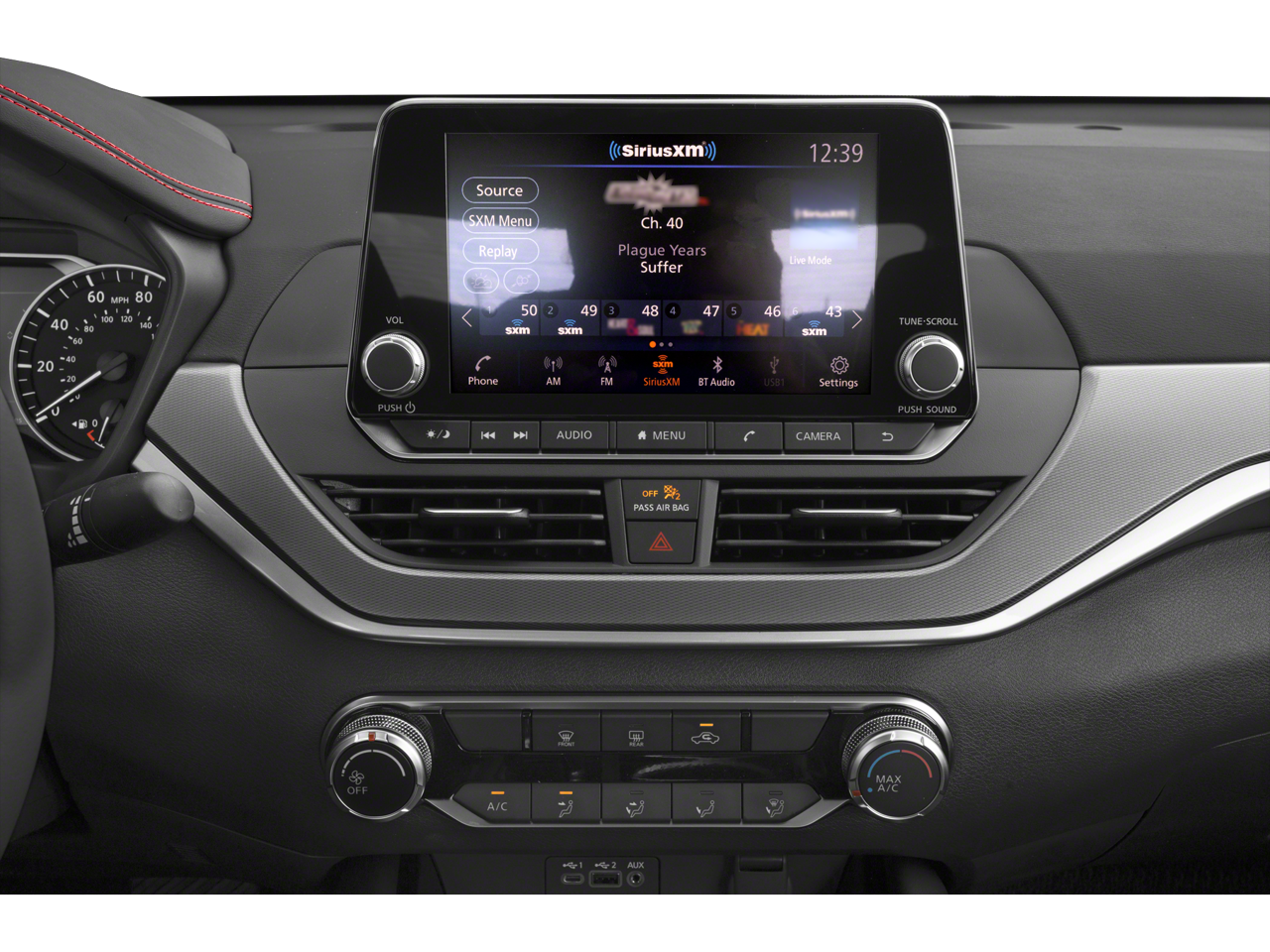 This vehicle comes equipped with : CVT with Xtronic, 4-Wheel Disc Brakes, 6 Speakers, ABS brakes, Air Conditioning, Alloy wheels, AM/FM radio: SiriusXM, Auto High-beam Headlights, Blind Spot Warning, Brake assist, Bumpers: body-color, Delay-off headlights, Driver door bin, Driver vanity mirror, Dual front impact airbags, Dual front side impact airbags, Electronic Stability Control, Four wheel independent suspension, Front anti-roll bar, Front Bucket Seats, Front Center Armrest, Front reading lights, Fully automatic headlights, Illuminated entry, Knee airbag, Leather Shift Knob, Low tire pressure warning, NissanConnect featuring Apple CarPlay, Occupant sensing airbag, Outside temperature display, Overhead airbag, Overhead console, Panic alarm, Passenger door bin, Passenger vanity mirror, Power door mirrors, Power driver seat, Power steering, Power windows, Radio data system, Radio: AM/FM Audio System, Rear anti-roll bar, Rear Parking Sensors, Rear reading lights, Rear seat center armrest, Rear side impact airbag, Rear window defroster, Remote keyless entry, Security system, Speed control, Speed-sensing steering, Speed-Sensitive Wipers, Split folding rear seat, Sport Seat Trim, SR Floor Mats/Trunk Mat/Hideaway Nets, Steering wheel mounted audio controls, Tachometer, Telescoping steering wheel, Tilt steering wheel, Traction control, Trip computer, Unique Sport Seats, Variably intermittent wipers, and Wheels: 19" Sport Alloy.