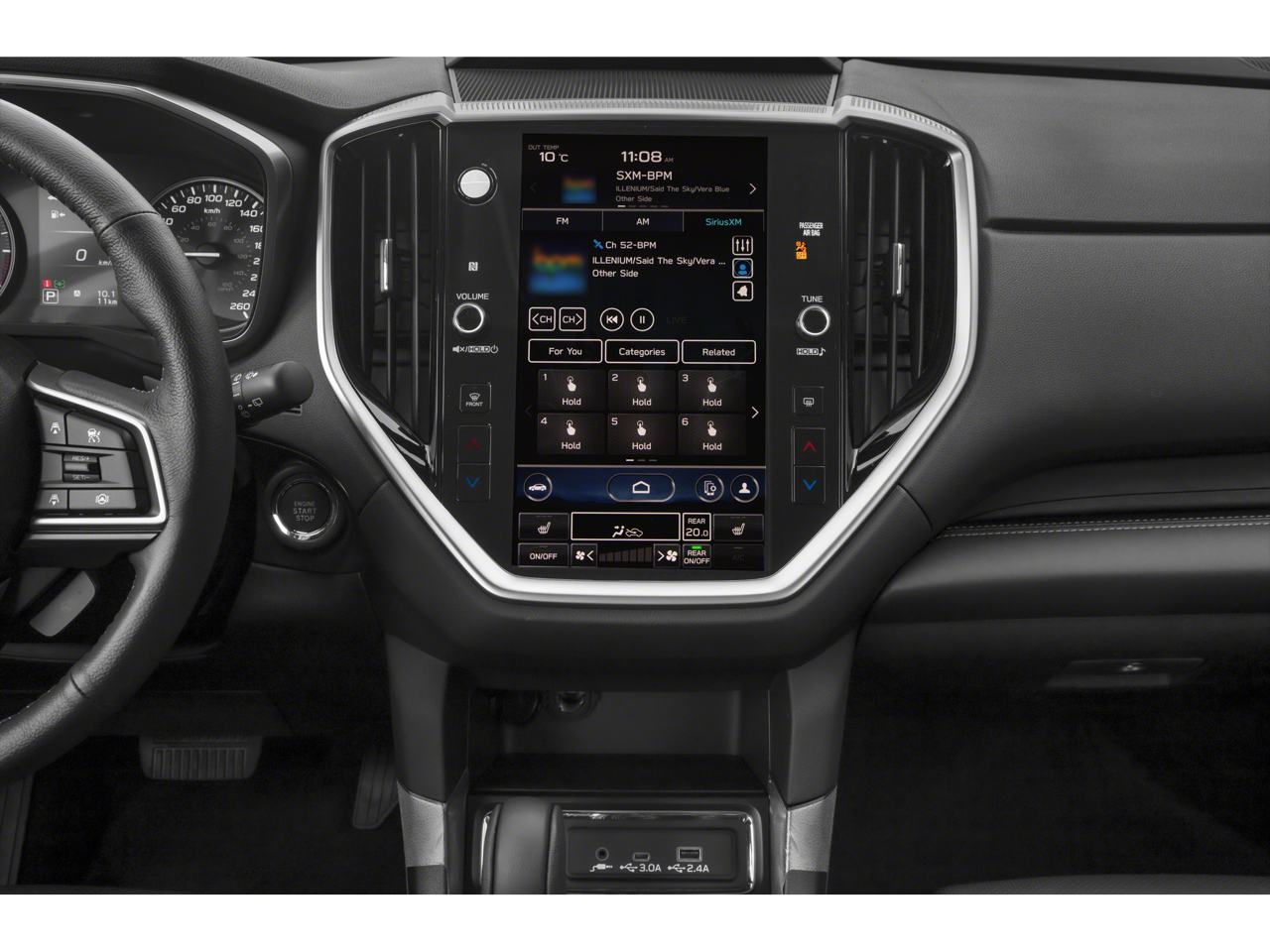 This vehicle comes equipped with: Standard Model, 3rd row seats: bench, 3rd Row Sunshade, 4-Wheel Disc Brakes, 6 Speakers, ABS brakes, Air Conditioning, All-Weather Floor Liners, Alloy wheels, AM/FM radio: SiriusXM, Auto High-beam Headlights, Auto-dimming Rear-View mirror, Automatic temperature control, Axle Ratio: 4.44, Brake assist, Bumpers: body-color, Cargo Tray, Compass, Delay-off headlights, Driver door bin, Driver vanity mirror, Dual front impact airbags, Dual front side impact airbags, Electronic Stability Control, Emergency communication system: STARLINK Safety and Security (Subscription Required), Exterior Parking Camera Rear, Four wheel independent suspension, Front anti-roll bar, Front Bucket Seats, Front Center Armrest, Front dual zone A/C, Front fog lights, Front reading lights, Fully automatic headlights, Garage door transmitter: HomeLink, Heated door mirrors, Heated Front Bucket Seats, Heated front seats, Heated rear seats, Heated steering wheel, HVAC memory, Illuminated entry, Knee airbag, Leather Shift Knob, Leather steering wheel, LED Upgrade, Low tire pressure warning, Memory seat, Occupant sensing airbag, Outside temperature display, Overhead airbag, Overhead console, Panic alarm, Passenger door bin, Passenger vanity mirror, Perforated Leather-Trimmed Upholstery, Power door mirrors, Power driver seat, Power Liftgate, Power passenger seat, Power steering, Power windows, Radio data system, Radio: Subaru STARLINK 11.6 Multimedia Plus System, Rear air conditioning, Rear anti-roll bar, Rear Bumper Cover, Rear reading lights, Rear seat center armrest, Rear window defroster, Rear window wiper, Reclining 3rd row seat, Remote keyless entry, Security system, Speed control, Speed-sensing steering, Split folding rear seat, Spoiler, STARLINK/Apple CarPlay/Android Auto, Steering wheel mounted audio controls, Tachometer, Telescoping steering wheel, Tilt steering wheel, Traction control, Trip computer, Turn signal indicator mirrors, Variably intermittent wipers, Wheels: 20 x 7.5 J Dk Gray Alloy w/Machine Finish, and Windshield Sunshade.