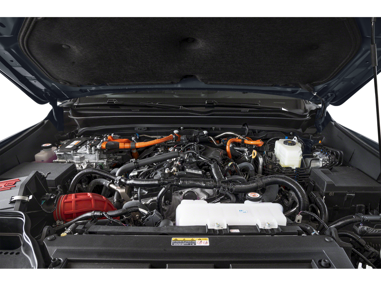 This vehicle comes equipped with: 2.4L I4 PDI Hybrid Turbocharged DOHC 16V, ABS brakes, Active Cruise Control, Alloy wheels, Electronic Stability Control, Front dual zone A/C, Heated door mirrors, Heated front seats, Illuminated entry, Low tire pressure warning, Navigation System, Power moonroof, Remote keyless entry, Traction control, 3.583 Axle Ratio, 4-Wheel Disc Brakes, 9 Speakers, Air Conditioning, AM/FM radio: SiriusXM, Anti-whiplash front head restraints, Apple CarPlay/Android Auto, Auto High-beam Headlights, Auto-dimming Rear-View mirror, Automatic temperature control, Brake assist, Bumpers: body-color, Driver door bin, Driver vanity mirror, Dual front impact airbags, Dual front side impact airbags, Emergency communication system: Safety Connect (1-year trial), Exterior Parking Camera Rear, Four wheel independent suspension, Front anti-roll bar, Front Bucket Seats, Front Center Armrest, Front fog lights, Front reading lights, Fully automatic headlights, Garage door transmitter: HomeLink, Heads-Up Display, Heated steering wheel, Htd & Vent TRD Pro IsoDynamic Performance Seats, JBL Premium Audio, Knee airbag, Leather Shift Knob, Leather steering wheel, Navigation system: Drive Connect (1 year trial) includes Cloud Navigation with real time traffic and Google POI, Occupant sensing airbag, Outside temperature display, Overhead airbag, Overhead console, Panic alarm, Passenger door bin, Passenger vanity mirror, Power door mirrors, Power driver seat, Power passenger seat, Power steering, Power windows, Radio: 14 Toyota Audio Multimedia, Rear anti-roll bar, Rear step bumper, Rear window defroster, Security system, SofTex Seat Trim, Speed control, Speed-sensing steering, Split folding rear seat, Steering wheel mounted audio controls, Tachometer, Telescoping steering wheel, Tilt steering wheel, Trip computer, Turn signal indicator mirrors, Variably intermittent wipers, Ventilated front seats, and Wheels: 18 Black TRD Pro Alloy.